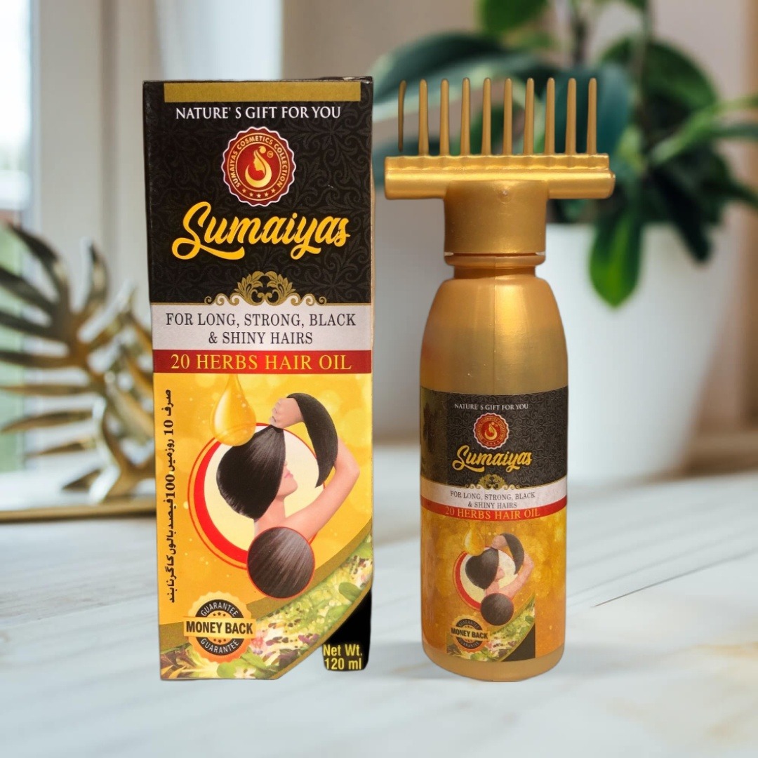 Experience the timeless power of herbal care with Sumaiya’s 20 Herbs Hair Oil—because your hair deserves the best!